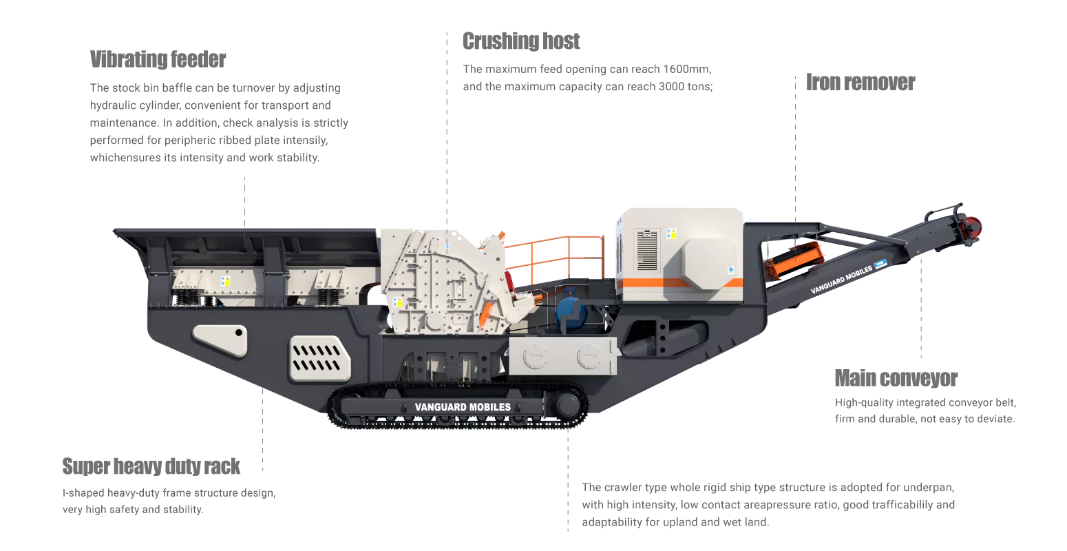 Mobile hammer crusher, also called mobile hammer crusher, is mainly to combine the hammer crusher and the mobile crawler frame ingeniously. It can be operated by remote control and has the advantage of "one- time crushing and forming".